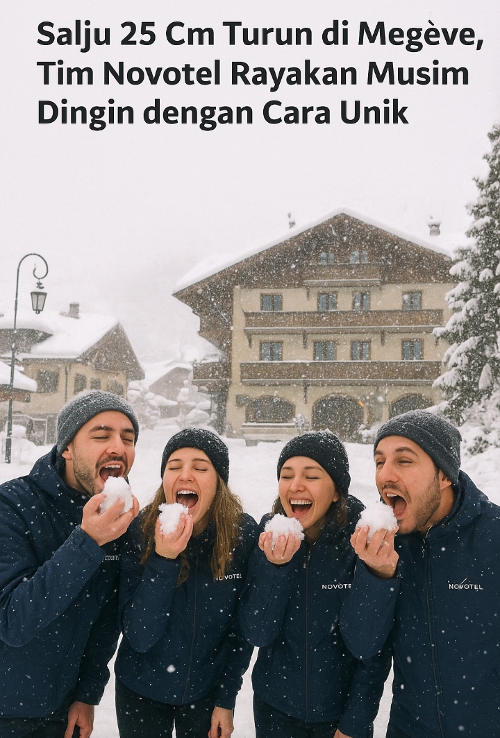 Fenomena turunnya salju tebal ini menjadi momen istimewa, tidak hanya bagi para wisatawan, tetapi juga bagi pelaku industri perhotelan setempat. Salah satu yang mencuri perhatian adalah tim Novotel Megève, yang merayakan kedatangan salju dengan cara unik dan penuh kehangatan. Dalam sebuah momen santai, beberapa anggota tim terlihat “mencicipi” salju yang baru turun, seolah-olah itu adalah kue musim dingin yang lembut dan segar.