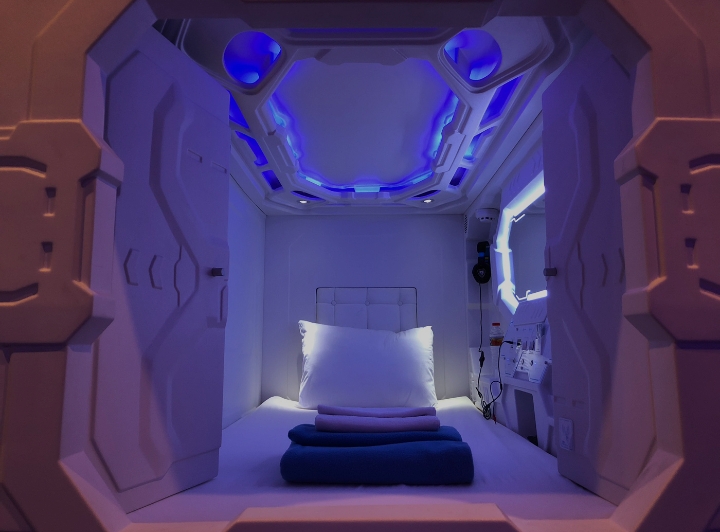 - Masuk ke kapsul dan nikmati waktu istirahatmu. Kamu bisa mengatur pencahayaan, suhu, dan posisi tempat tidur sesuai keinginan.