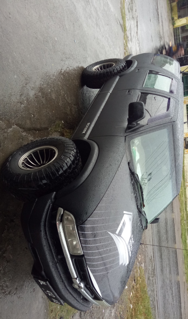 Perjalanan darat selalu menghadirkan cerita tersendiri, terutama ketika cuaca tidak bersahabat. Dalam sebuah foto traveling yang diambil di pinggir jalan saat hujan, tampak sebuah Opel Blazer berwarna gelap terparkir dengan gagah. Permukaan bodinya basah oleh air hujan, memperlihatkan suasana perjalanan yang nyata dan penuh tantangan.
