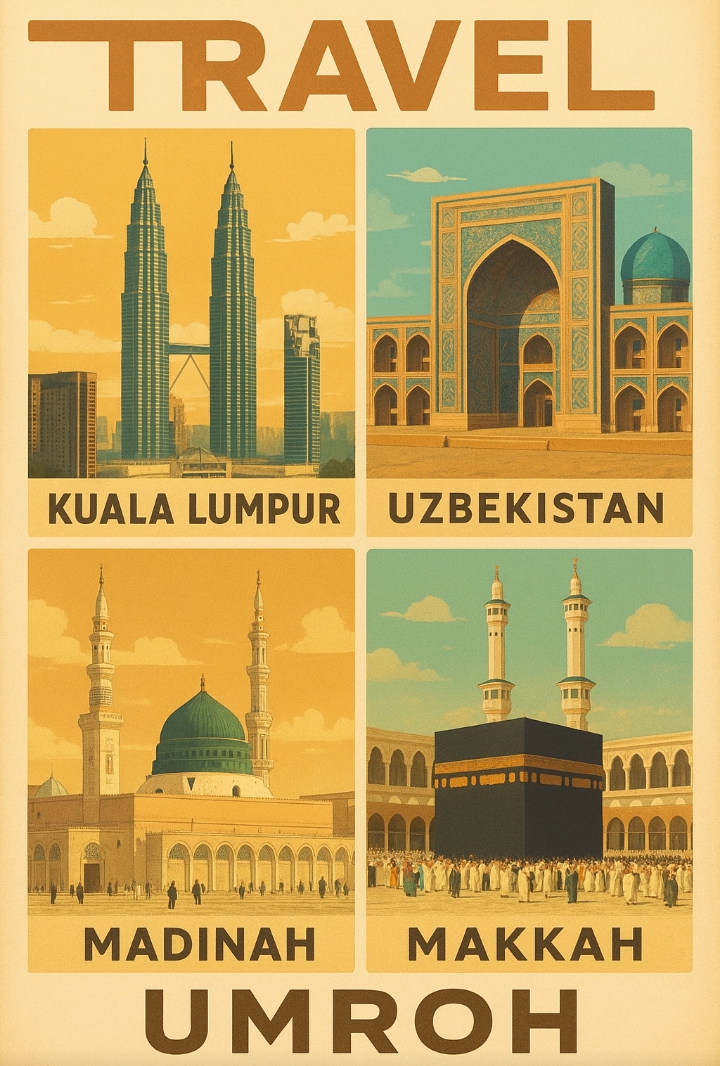 Menjawab kebutuhan tersebut, GetRihlah menghadirkan Paket Traveling Uzbekistan & Umroh, sebuah konsep perjalanan unik yang memadukan city tour internasional, ziarah jejak ulama besar, hingga ibadah umroh yang dikemas secara santai, nyaman, dan penuh makna.